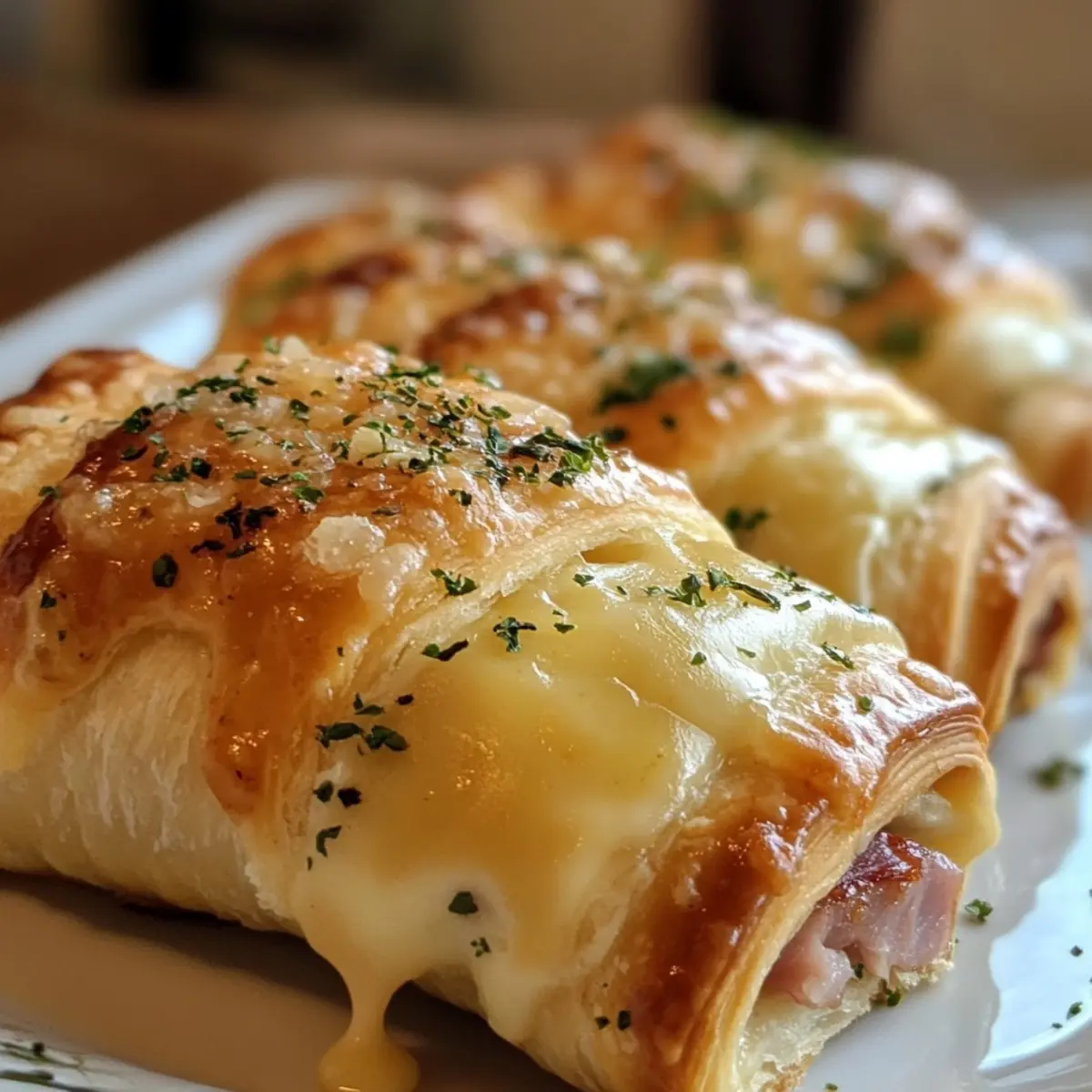 Bacon Twist: Swap ham for crispy bacon, adding a smoky flavor that makes these roll-ups even more indulgent.